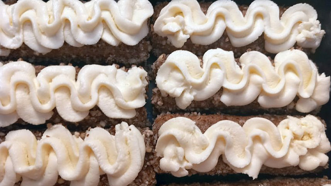 Krok 8: Pomocí cukrářského sáčku nastříkáme krém na vrchní stranu každého zákusku.