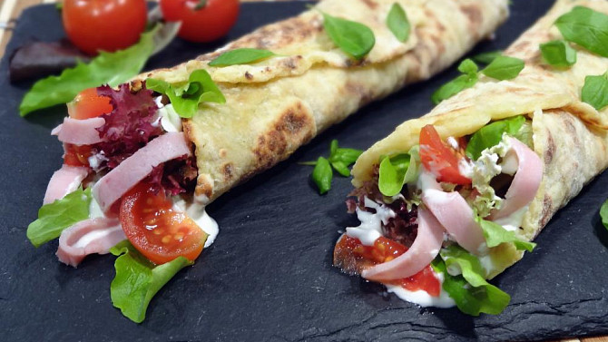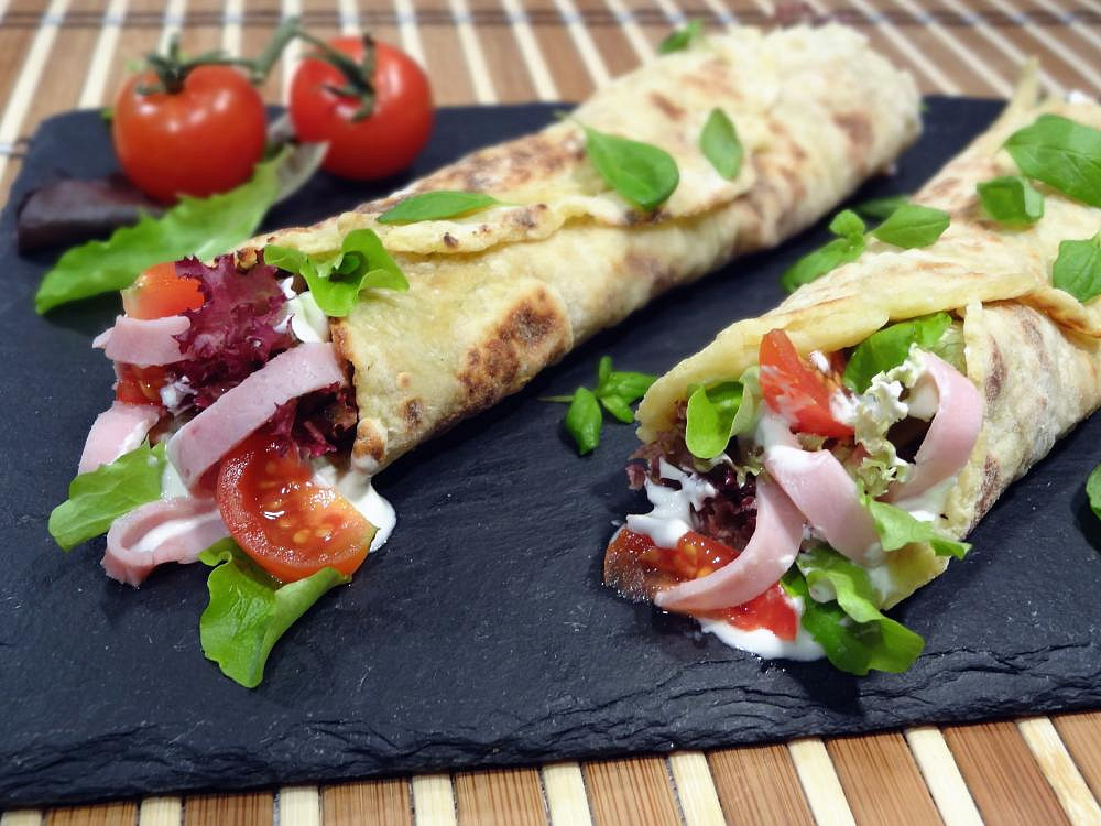 Bramborové tortilly se šunkou a zeleninou