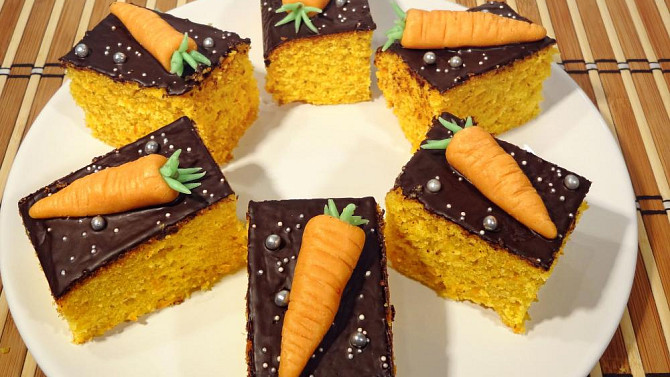 Upečte vláčné mrkvové řezy s čokoládovou polevou a marcipánovými mrkvičkami. Díky nastrouhané mrkvi a medu je těsto krásně šťavnaté a mandlové mrkvičky mu dodají hravý vzhled, který osloví malé i velké.