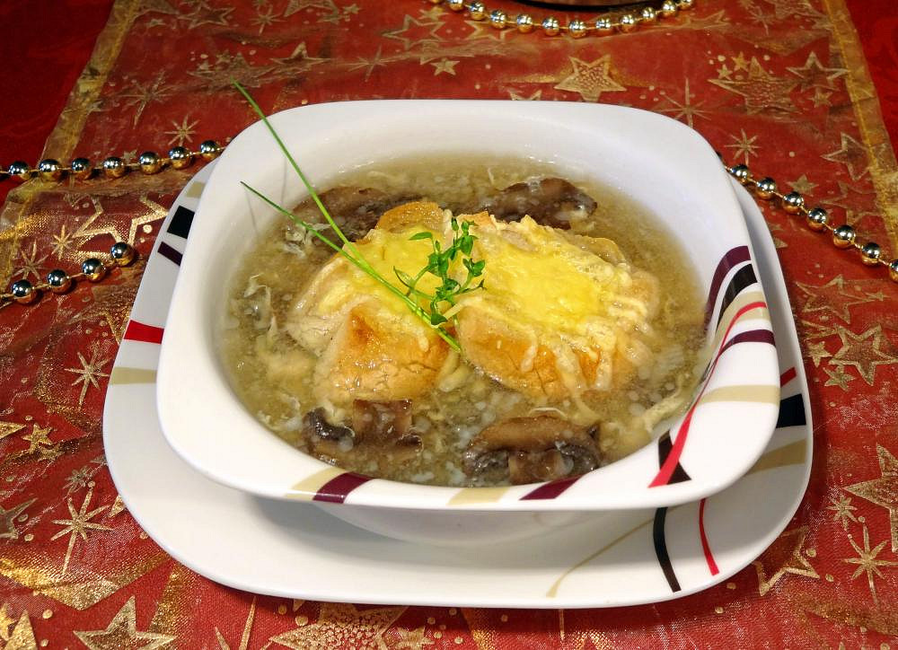 Sytá a hřejivá cibulačka má díky masovému vývaru plnou chuť. Cibuli před zalitím opečte, aby propůjčila polévce lahodně nasládlou chuť. Na závěr do cibulačky vmíchejte rozšlehané vejce a podávejte ji se zapečenou bagetkou.