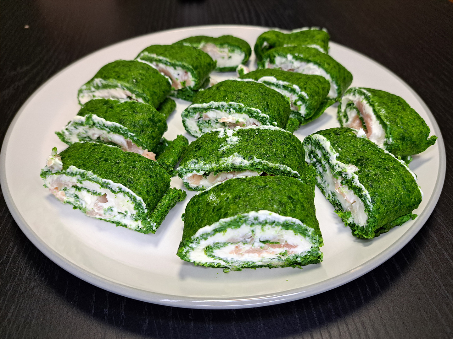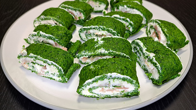 Špenátová roláda s krémem a uzeným lososem