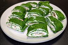 Špenátová roláda s krémem a uzeným lososem