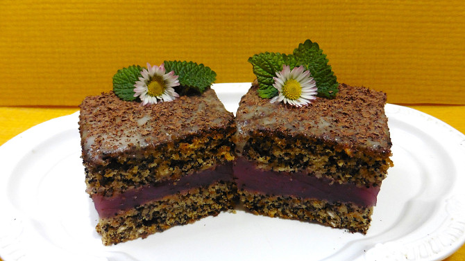 Makovec bez vajec s jahodovým pudinkem