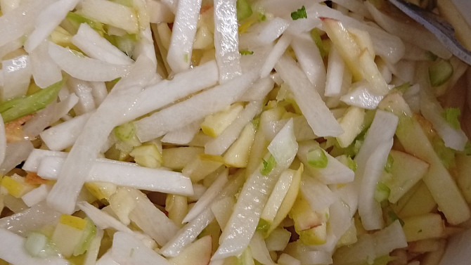 Salát z bílé ředkve, vodnice a jablek