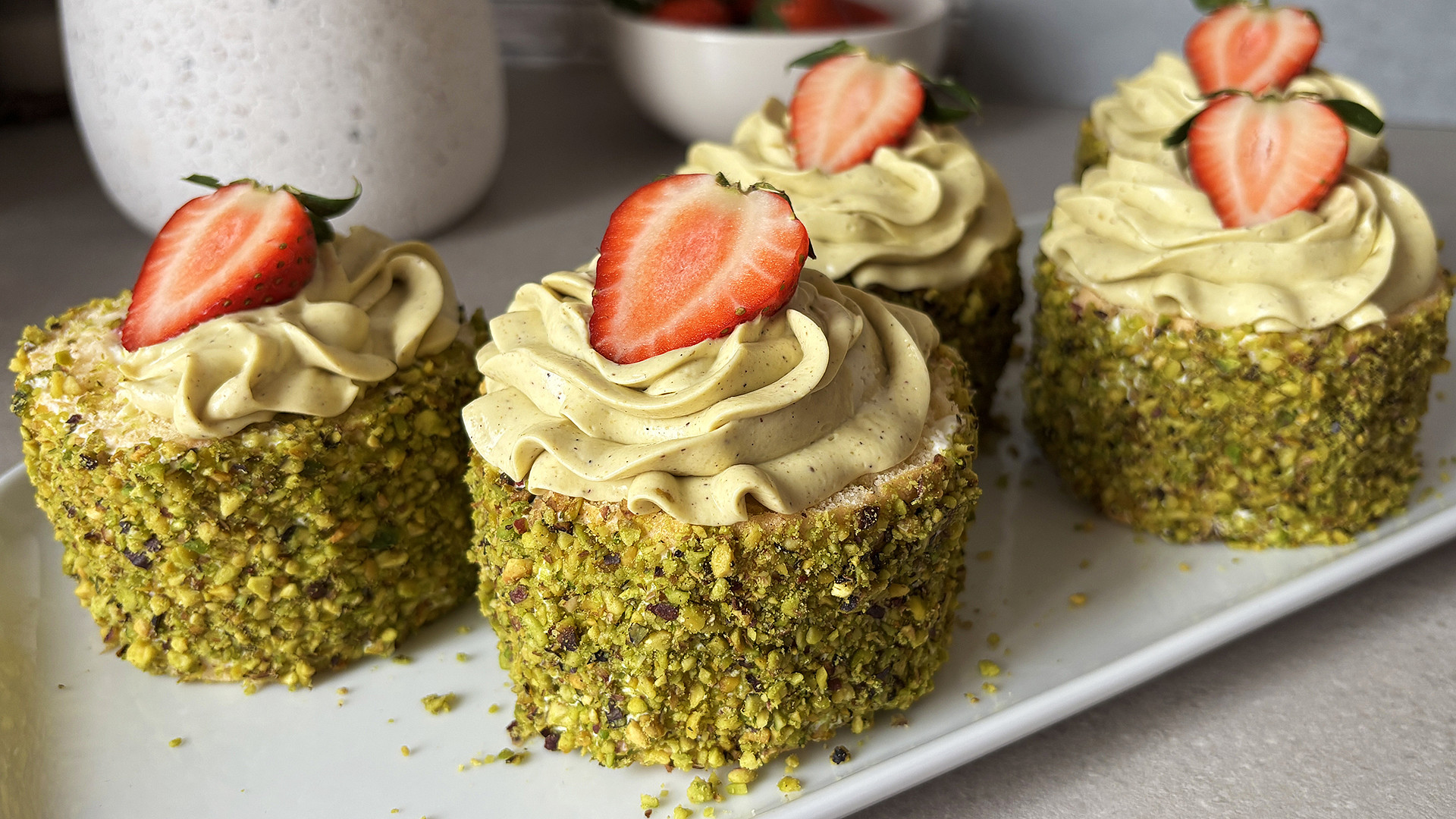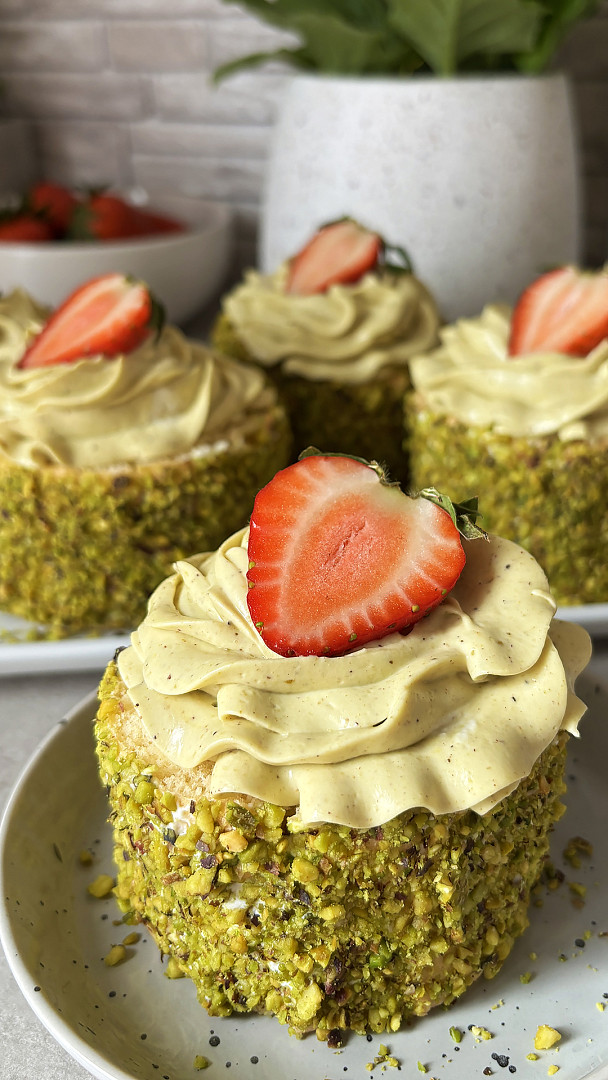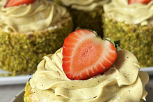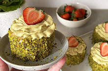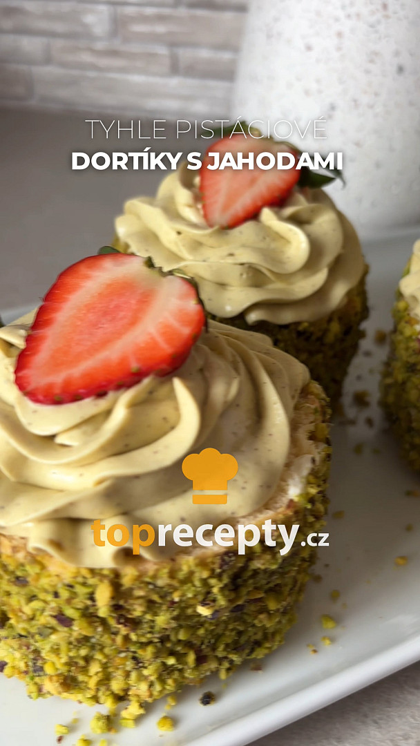 Pistáciové dortíky s jahodami