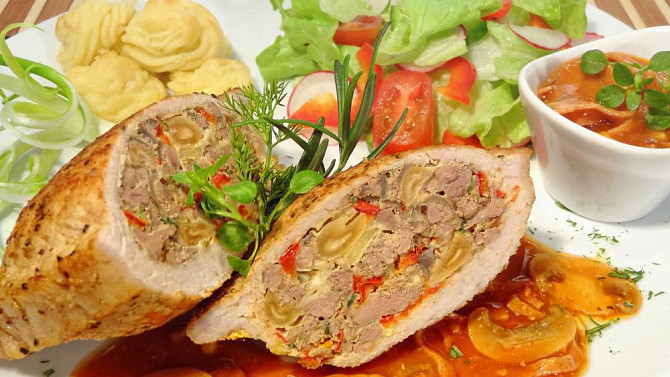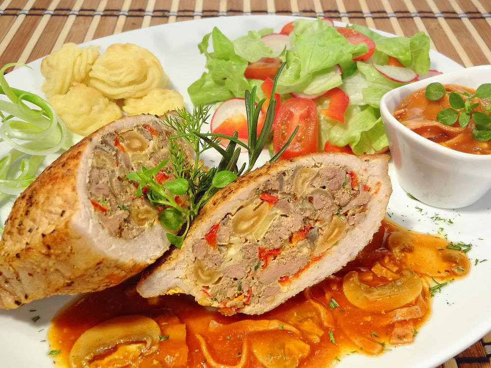 Plněné vepřové kotlety s játry a žampiony