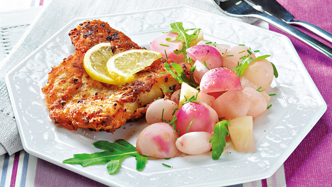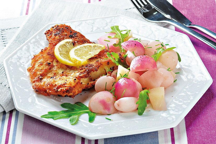 Šťavnaté filety z tresky s glazovanou kedlubnou a ředkvičkami na másle a vinném octu. Tato lehká a barevná kombinace s vůní čerstvé pažitky a citronu tvoří dokonalý oběd, který vás nadchne svou jemnou a vyváženou chutí.