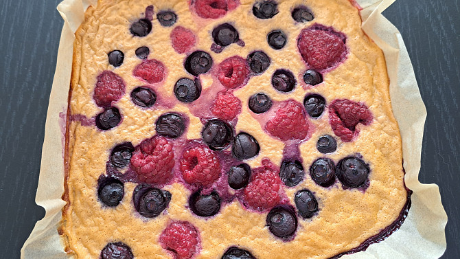 Ideální koláč, který může být podáván jako rychlá zdravá snídaně nebo svačina. Na těsto potřebujeme jen řecký jogurt, vejce, vločky a dosladíme jej javorovým sirupem. Nahoru pak nasypeme libovolné ovoce.