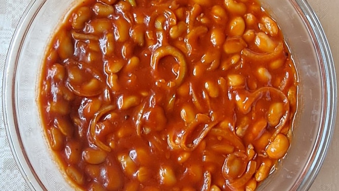Sytý fazolový salát z velkých bílých fazolí uvařených doměkka se spojuje s výrazným rajčatovým základem z protlaku, džusu a česneku. Dochucený kořením, chilli a jemně naloženou cibulí, se podává vychlazený s pečivem jako osvěžující příloha nebo samostatné jídlo.