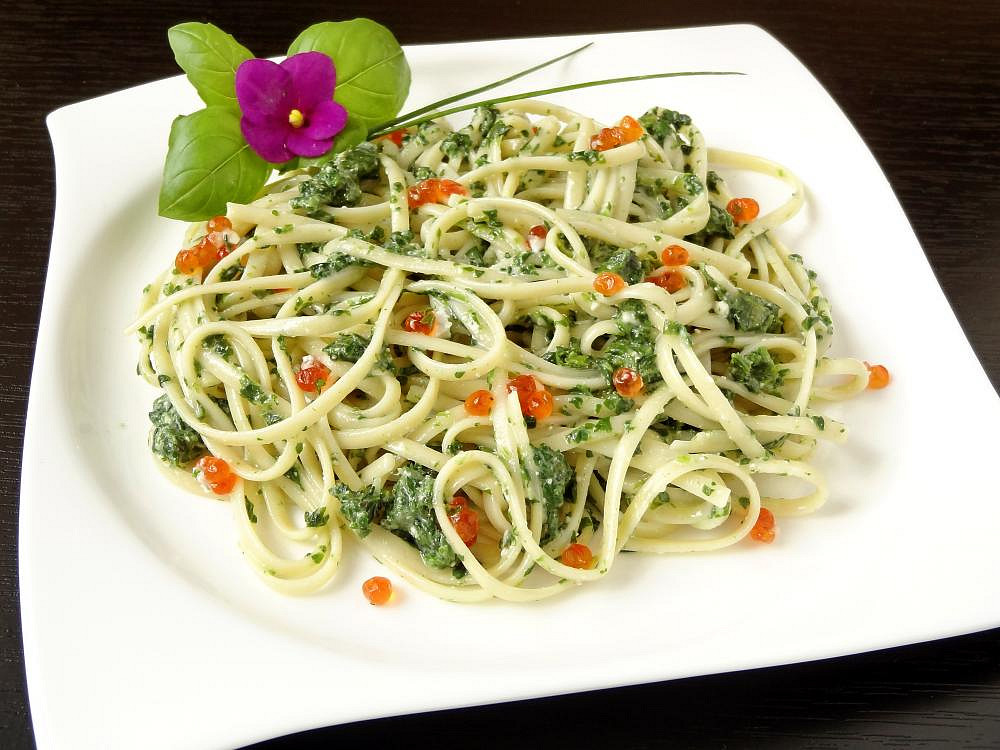 Tagliatelle se špenátem a kaviárem