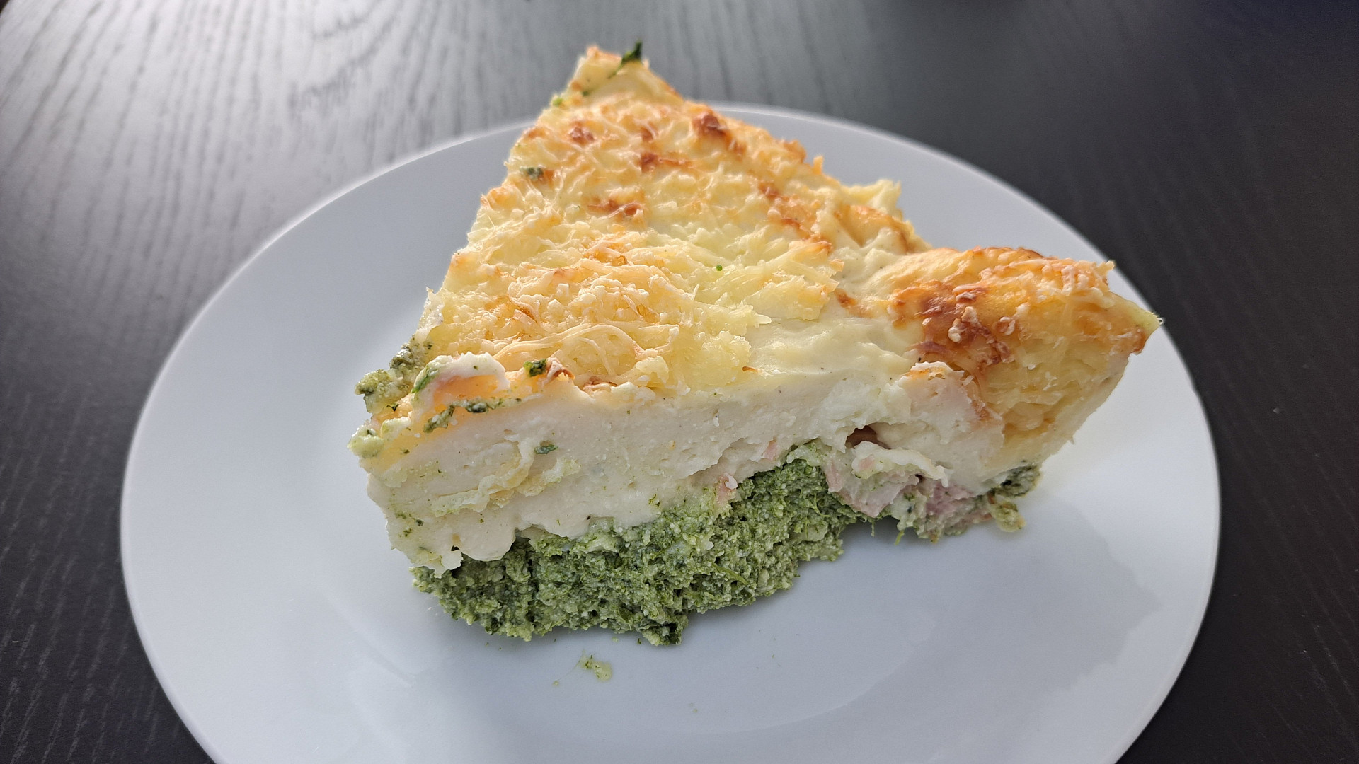 Máte chuť na sytý slaný koláč? Špenát smícháte s ricottou a vejci, rozprostřete do formy, doplníte šunkou a zalijete krémovým bešamelem. Koláč zapečete dozlatova a podáváte jako hlavní chod nebo vydatnou večeři.