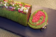 Špenátová roláda s náplní z červené řepy a sýru