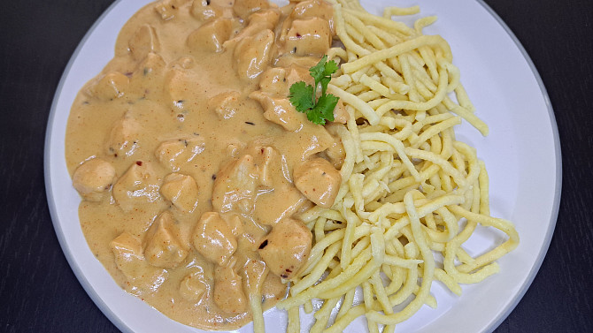 V tomto receptu se opečené kousky kuřecího masa zalijí kokosovým mlékem. Směs medu, zázvoru a arašídového másla vytvoří bohatou omáčku s asijským nádechem, která k těstovinám překvapivě skvěle ladí.