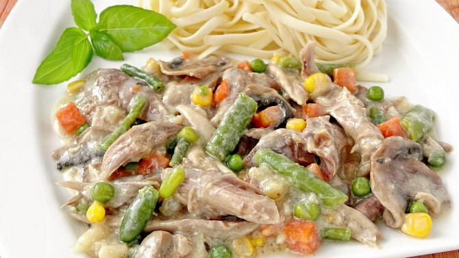 Krok 9: Nakonec pokrm rozdělíme na talíře a podáváme s těstovinami nebo s rýží.