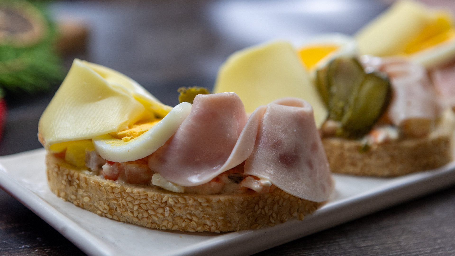 Žádná oslava se neobejde bez poctivých chlebíčků. Šunkové chlebíčky podle Mirky van Gils Slavíkové jsou zdobené domácím vlašským salátem, šunkou, vejcem a okurkou. Podle chuti můžete doplnit sýr, jarní cibulku, nebo petrželku.
