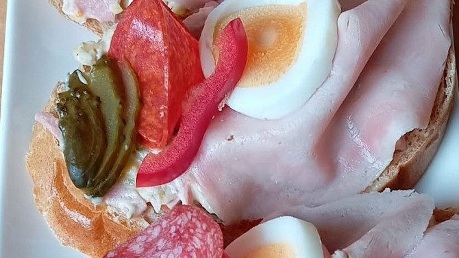 Chlebíčky neodmyslitelně patří ke slavnostním chvílím. Na plátek veky navrstvíme domácí vlašský salát z brambor, kořenové zeleniny, hrášku, salámu a zálivky. Chlebíček pak elegantně dozdobíme uzeninami a zeleninou.