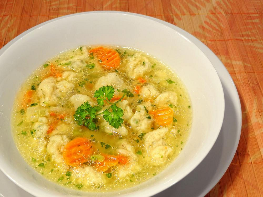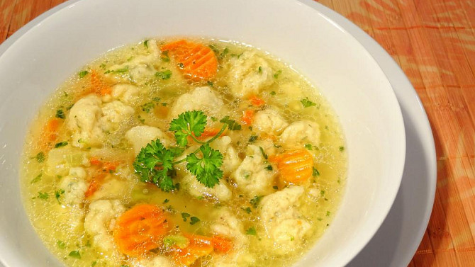 Slepičí polévka se sýrovými nočky