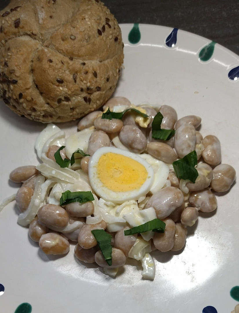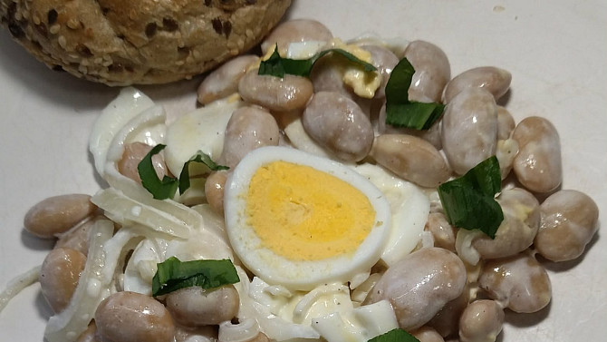 Fazole patří k vyhledávaným luštěninám. Ty konzervované nám ušetří čas s jejich namáčením a vařením. Fazole tak smícháme s vejci vařenými natvrdo, cibulkou a majonézou. Salátek pak stačí dochutit solí a pepřem.