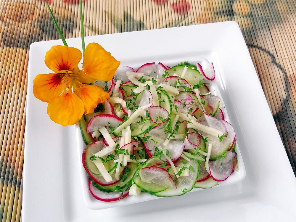 Ředkvičkovo-okurkový salát se sýrem