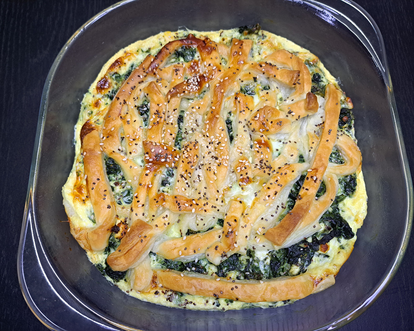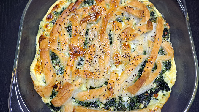 Tento špenátový koláč je inspirovaný oblíbenou balkánskou specialitou. Proužky chlazeného listového těsta naskládáme do formy, naplníme špenátovou směsí s balkánským sýrem, nakonec zalijeme vejci rozmíchanými s mlékem a upečeme dozlatova.