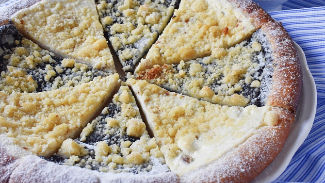 Krok 8: Frgály bohatě potřeme připravenou náplní, posypeme drobenkou a necháme už jen chvíli dokynout.