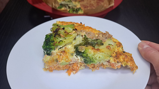 Netradiční slaný koláč, kde základ tvoří zdravá směs ze strouhané mrkve a sýra. Po zapečení vznikne pevný korpus, který skvěle doplňuje brokolice a kousky tuňáka. Vše propojí lehká vaječná zálivka s bylinkami, díky níž vzniká chutný a nutričně vyvážený pokrm s minimem sacharidů.