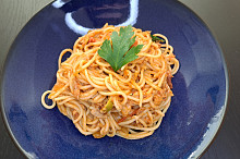 Středomořské tuňákové špagety s olivami