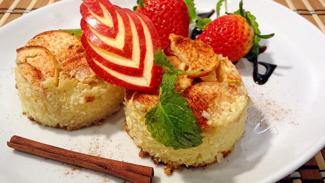 Vláčný rýžový nákyp z mléčné rýžové kaše je zapečený s kyselkavými jablky a provoněný skořicí a citronovou kůrou. Poctivá dávka másla a bílkový sníh se postarají o dokonale nadýchaný sladký nákyp, který zmizí ze stolu mrknutím oka.