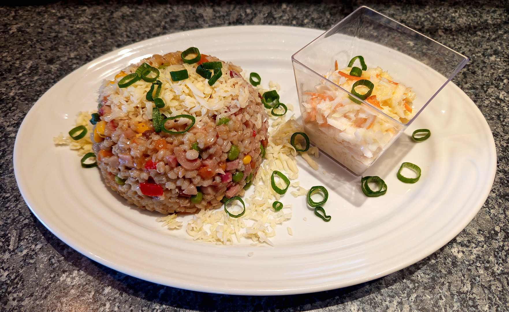 Kroupoto s masem a zeleninou