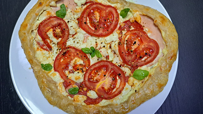 Slaná galetka se sýrem a rajčaty