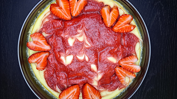 Cheesecake patří k oblíbeným osvěžujícím moučníkům. Na jeho základ použijeme máslové sušenky smíchané s rozpuštěným máslem. Vrstvu náplně připravíme z krémového sýru a zakysané smetany. Nahoru naneseme jahodový rozvar.