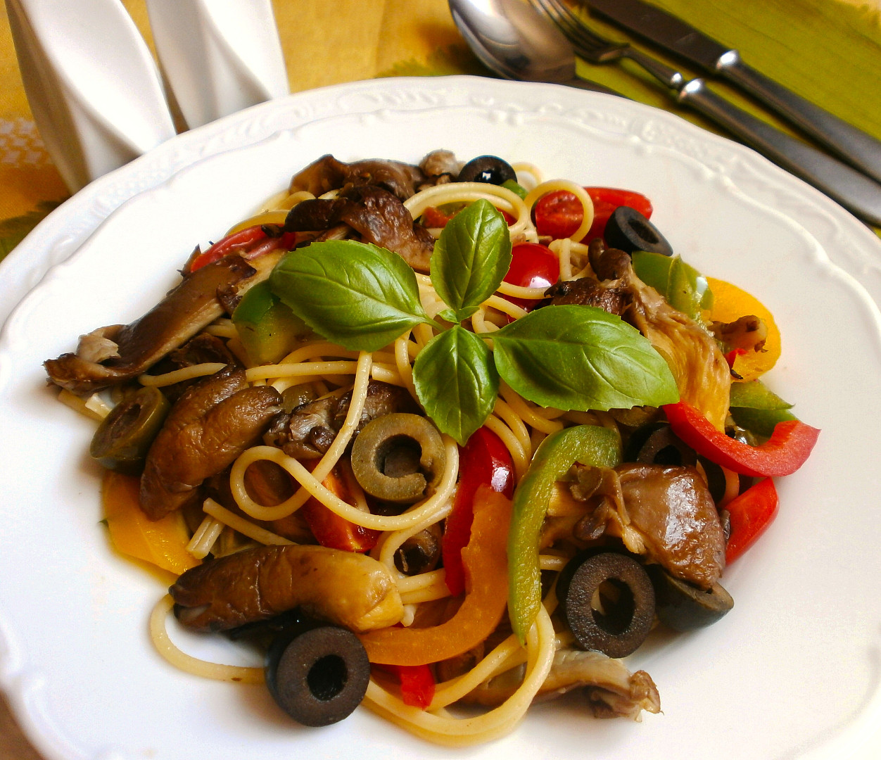 Špagety s hlívou ústřičnou na italský způsob