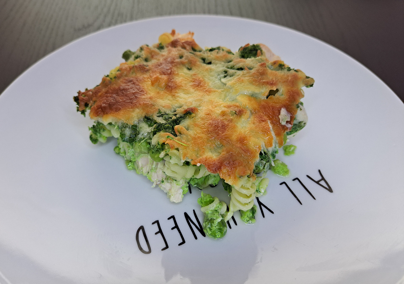 Jednoduché zapečené těstoviny jsou dobrým nápadem i na všední a uspěchaný den. Oblíbený druh těstovin předvaříme, smícháme s kuřecím masem, špenátovou směsí a zasypeme nastrouhaným sýrem. Pečeme dozlatova.