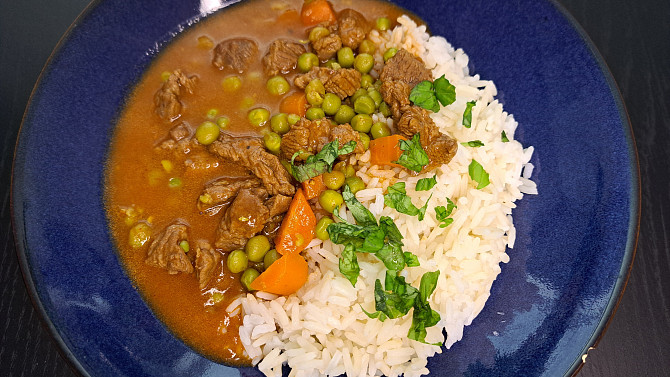 Poctivé dušené hovězí na mrkvi a hrášku je klasikou, která nikdy nezklame. Šťavnaté maso se pomalu dusí do měkka a společně se sladkou mrkví a hráškem vytváří lahodné jídlo s jemnou chutí, ideální k rýži či bramborové kaši.