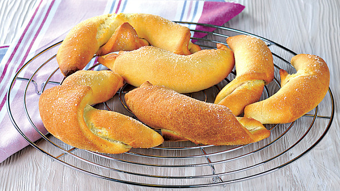 Upečte si nadýchané karlovarské rohlíky, které díky přidanému tuku zůstávají dlouho čerstvé a vláčné. Příprava v domácí pekárně zajistí dokonalé propracování těsta téměř bez práce. Zbývá jen umotat rohlíky a upéct je dozlatova.