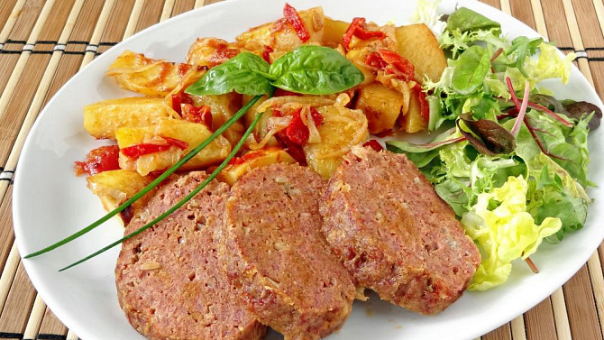 Krůtí sekaná s bramborami z jednoho pekáčku
