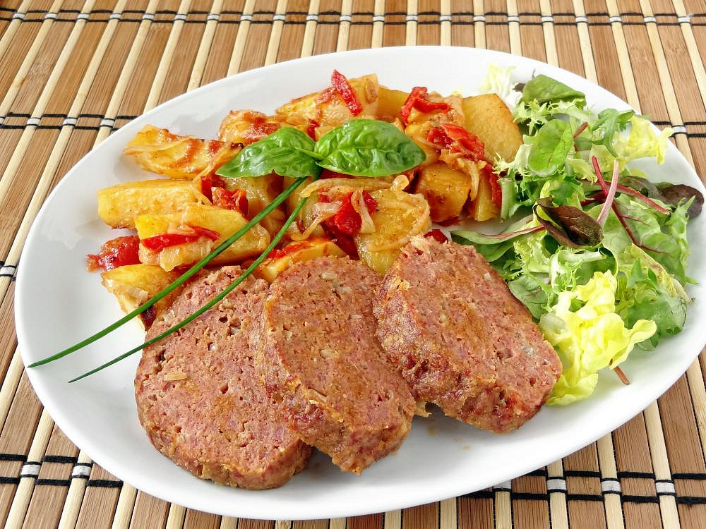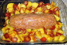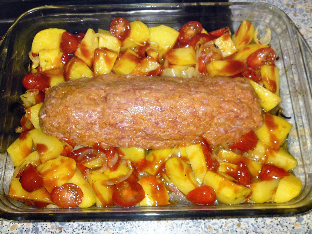Domů - Recepty - Krůtí sekaná s bramborami z jednoho pekáčku
