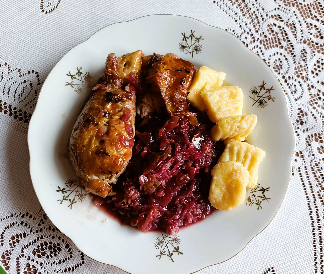 Kuřecí stehna osolíme, okmínujeme a upečeme na kysaném zelí s jemně zkaramelizovaným základem. Během pečení maso změkne a na závěr získá křupavou kůžičku. Podáváme s bramborami nebo knedlíky jako syté hlavní jídlo.