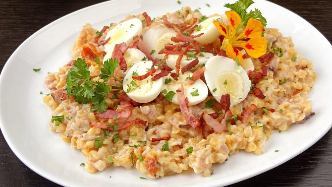 Zařaďte do svého jídelníčku luštěniny díky lahodně krémové červené čočce. Se smaženou anglickou slaninou a křepelčími vajíčky osloví celou rodinu. Voní sušenými rajčaty a její bohatá chuť si získá i odpůrce luštěnin.