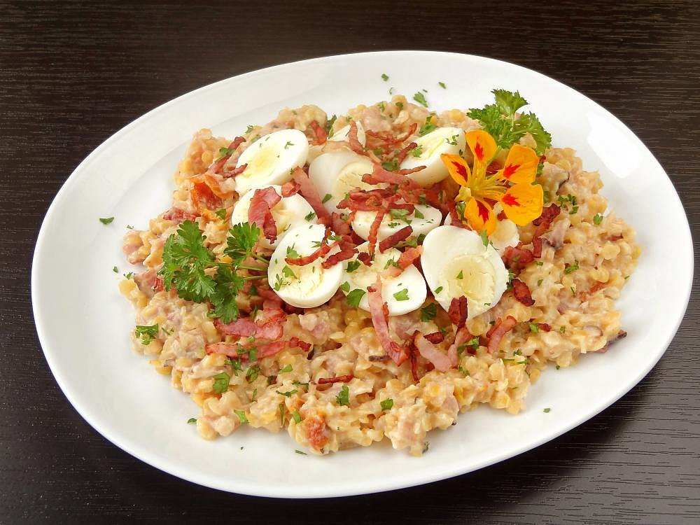 Červená čočka s křepelčími vajíčky