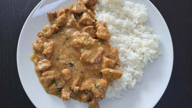 Rychlý recept z vepřového masa, který skvěle kombinuje šťavnaté maso s výraznou chutí česneku a hořčice. Maso se nejprve zprudka opeče, poté podlije vývarem a dusí do měkka. Jemná šťáva a závěrečné dochucení vytvoří lahodný pokrm, který se hodí k rýži i těstovinám.
