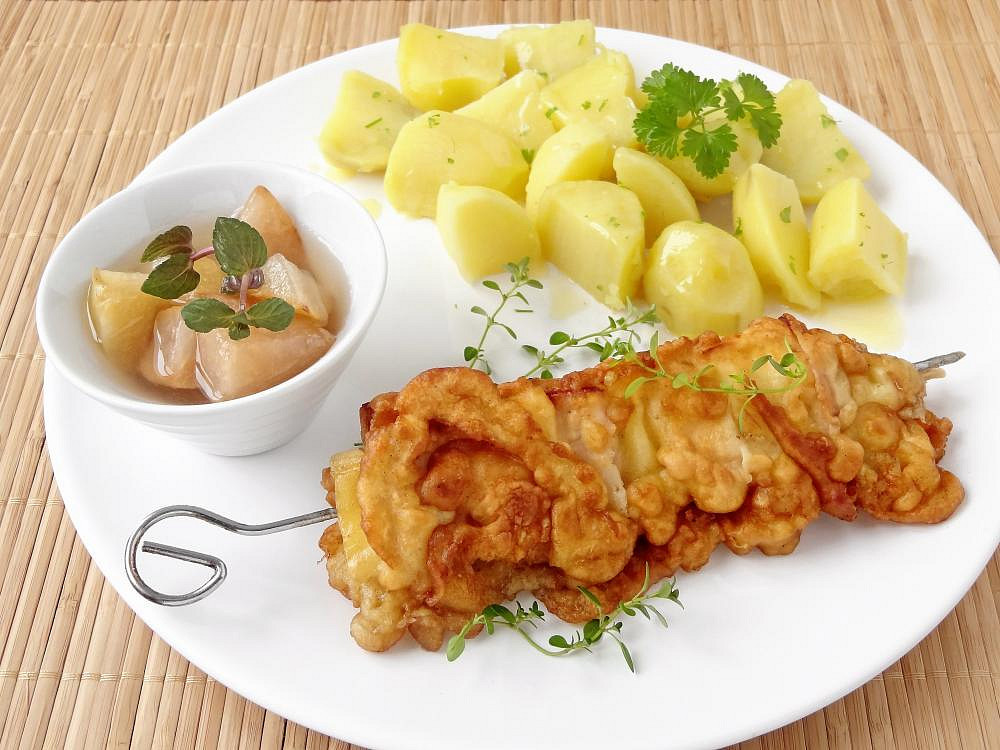 Smažený šunkový špíz s balkánským sýrem