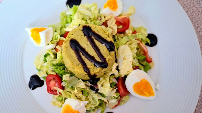 Zeleninový flan je lehký a jemný pokrm, který se připravuje vařením v malých mističkách a následně vyklápí na čerstvý salát. Na talíři je doplněn vejcem uvařeným natvrdo a lehce zakápnut balsamikovým krémem.
