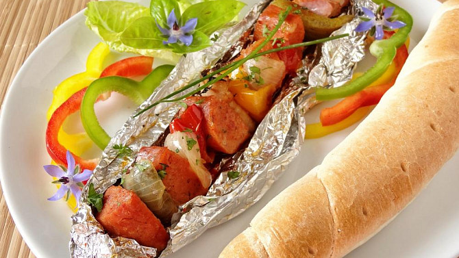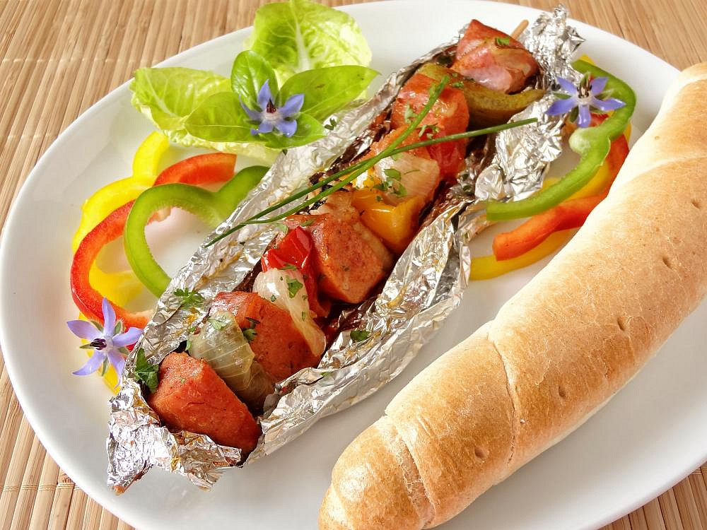 Krok 5: Vložíme do vyhřáté trouby a pečeme asi 30 minut. Poté odstraníme alobal a špízy podáváme s čerstvou zeleninou a pečivem.