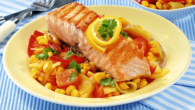 Grilovaný losos na kukuřičném salátu