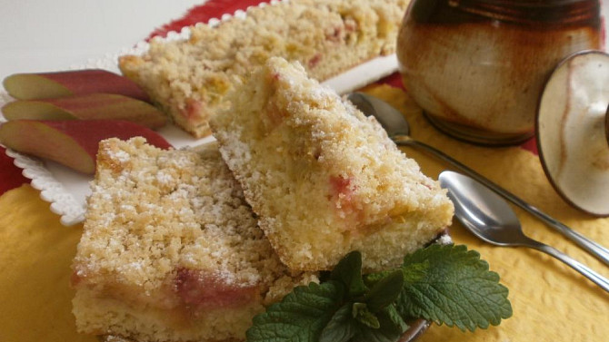 Rychlý rebarborový koláč se skořicovou drobenkou