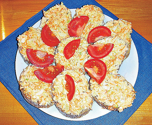 Krok 3: Důkladně promícháme a dáme chvíli odležet do lednice. Pak natíráme na krajíčky veky nebo chleba a zdobíme dle chuti.