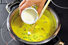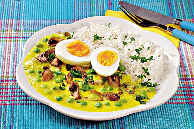 Hráškové karí s vejcem a žampiony