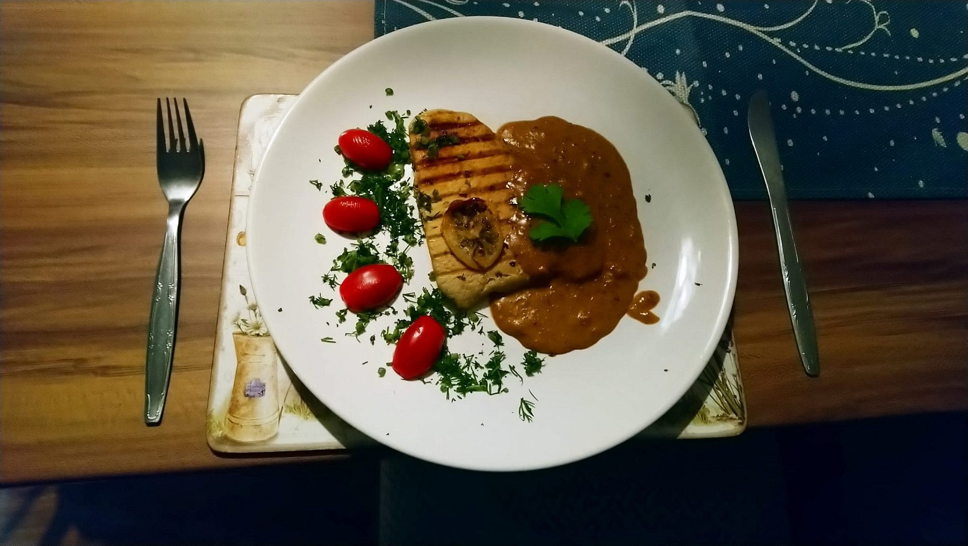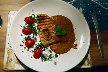 Krůtí prsa sous vide na grilu se sýrovou omáčkou