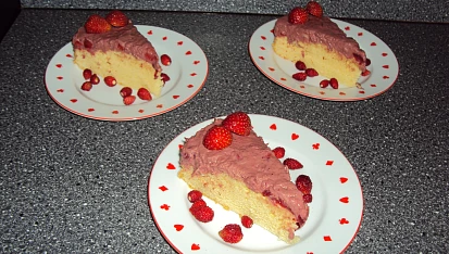 Krok 4: Na pečenou vychladlou buchtu naneseme krém a doplníme ovocem.